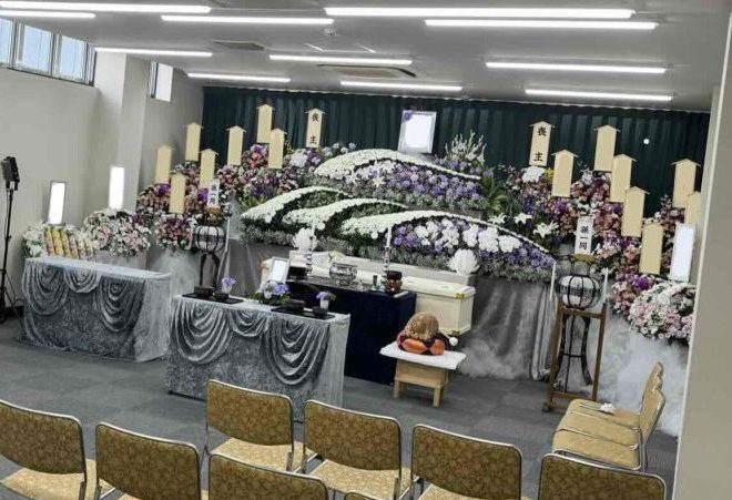 新東松山斎場 鈴木家 2025/11/12 にじのわプラン”彩”660,000円 会葬者70人 家族葬 東松山市お住まいの方で、いろどりプランでのご葬儀でした。 家族・御親戚・組合さんいっぱいお越しいただきました。 いっぱいのお花の祭壇で綺麗なお花に囲まれての、家族葬でのご葬儀でした