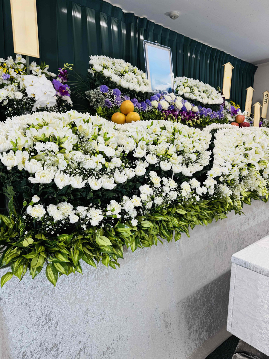 新東松山斎場 2026/01/14 にじのわプラン”彩” 660,000円 会葬者68人 一般葬でご葬儀でした。 彩プランでのご葬儀でした。 家族・親戚・地元の友人の方がお見送りにご会葬にこられました。 白色のお花ベースで祭壇をつくりました。 プラン内の金額でお手伝いいたしました。 別途で料理・返礼品はかかります。 まだ62歳とお若い方で、地元のご友人が沢山こられた葬儀でした。